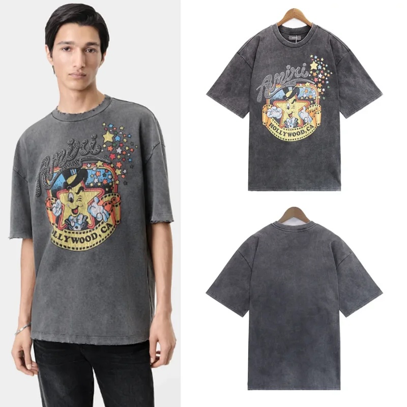 Home > Amiri washed vintage unisex loose casual T-shirt-1617
