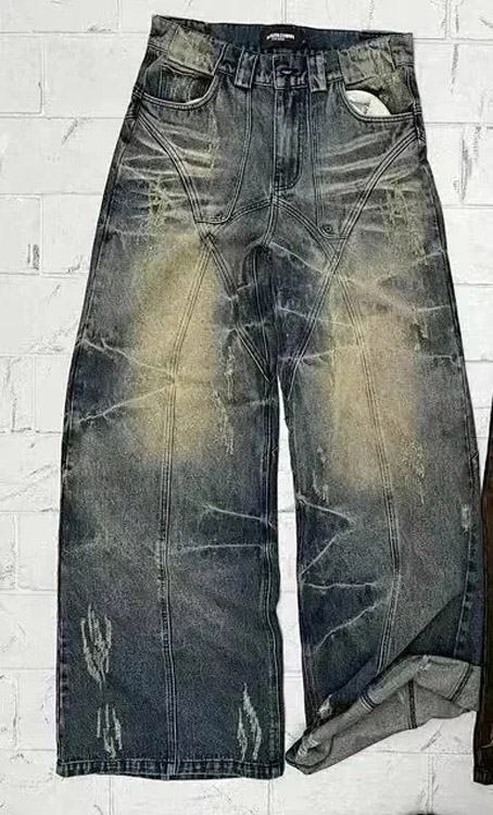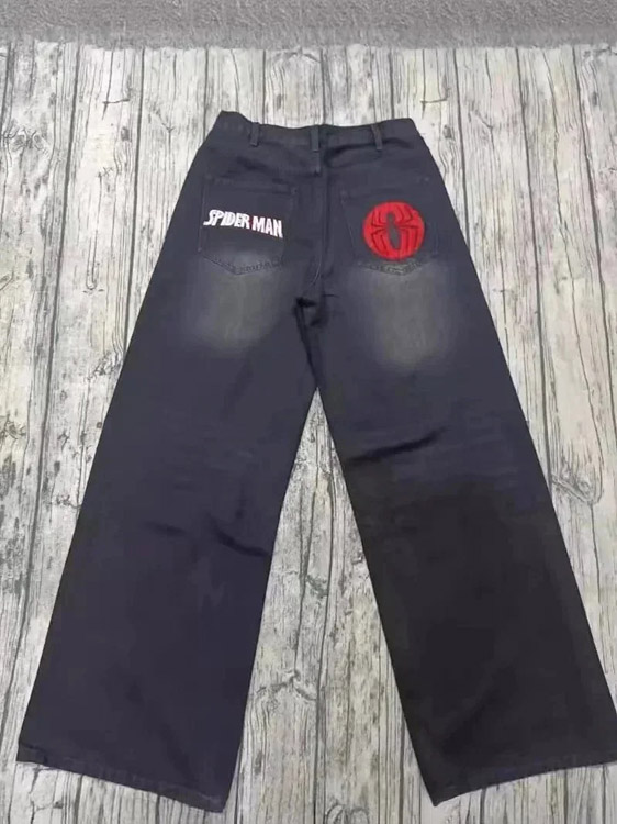 Batman embroidered loose wide-leg jeans-5075