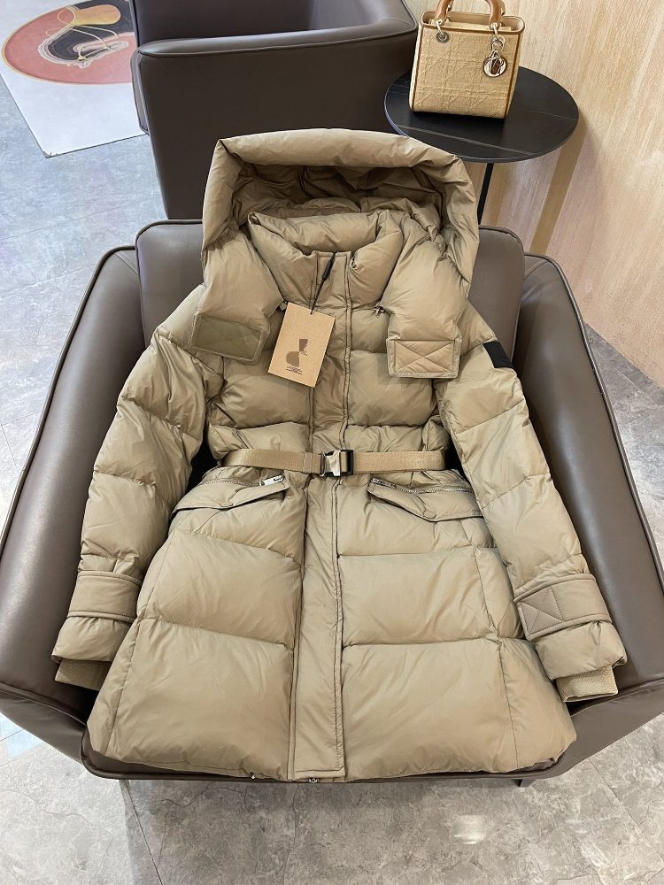Burberry adjustable metal belt waist-cinching hooded down coat-5337