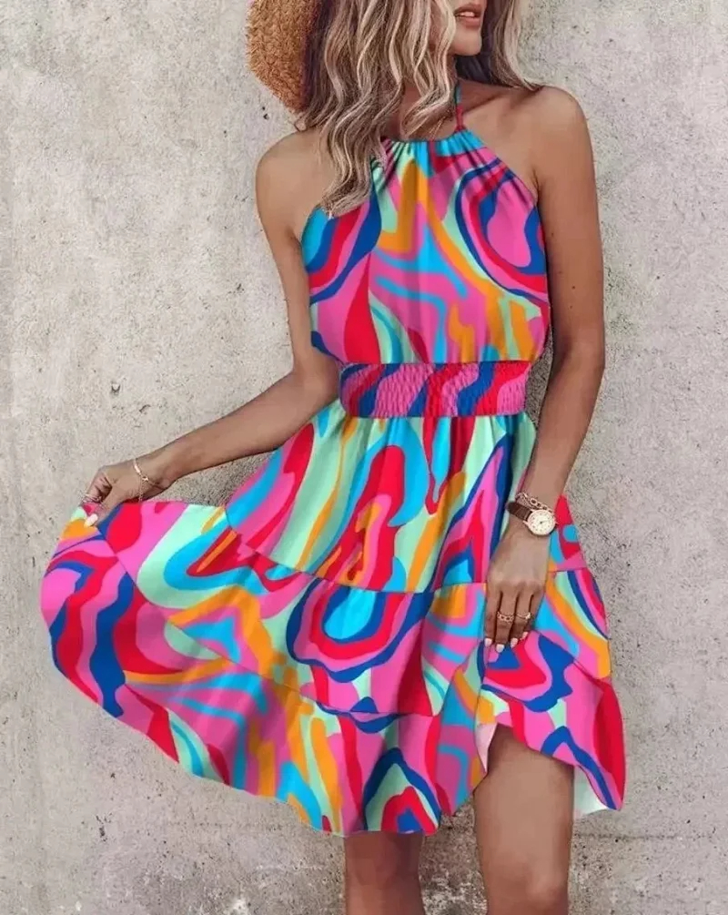 European and American summer off-the-shoulder halter neck loose women's dress-2470