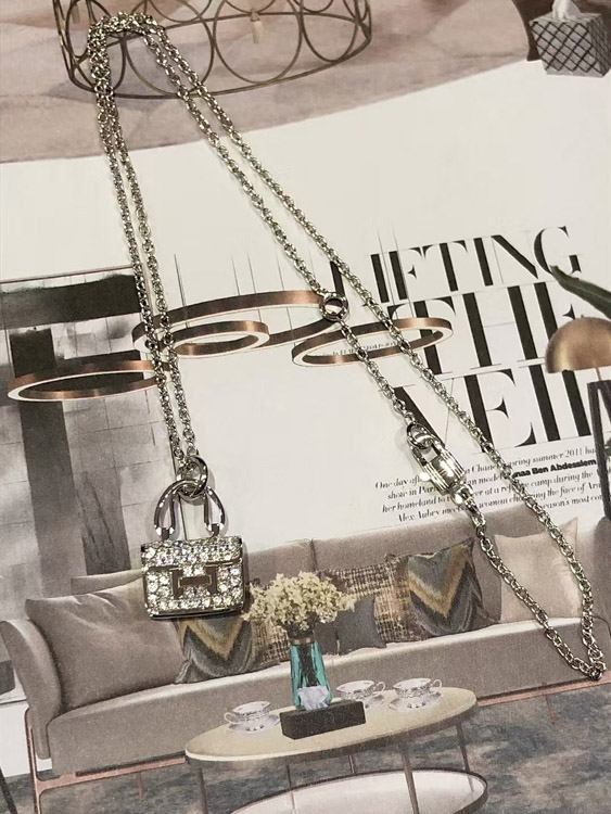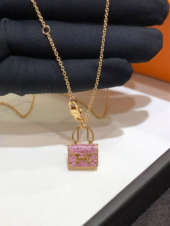 Home > Hermes padlock diamond rose gold pendant chain necklace-3837