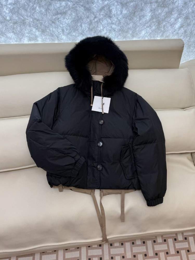 MaxMara reversible down jacket with fur-trimmed hood and elasticated waist-5348