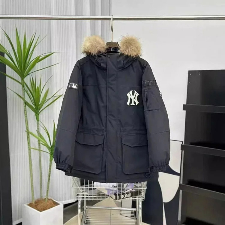 Home > MLB workwear large fur collar mid-length white duck down parka jacket-4347