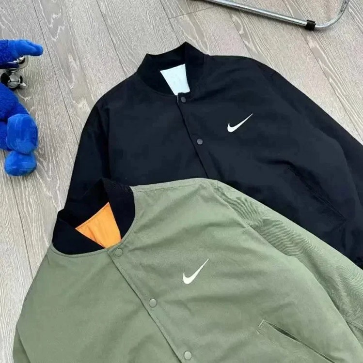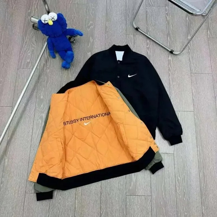 Home > Nike x Stussy Collaboration Logo Embroidered Reversible Bomber Jacket-4815