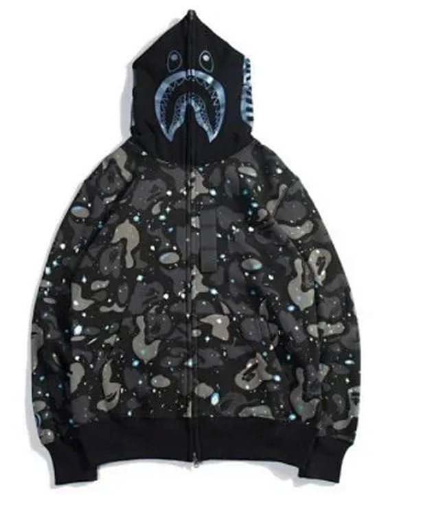 A BATHING APE x KID CUDI collaboration camouflage shark hoodie-5149