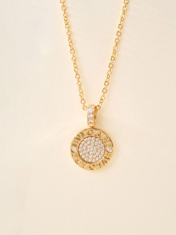 Bulgari double-sided green letter engraving vintage diamond coin necklace-4000