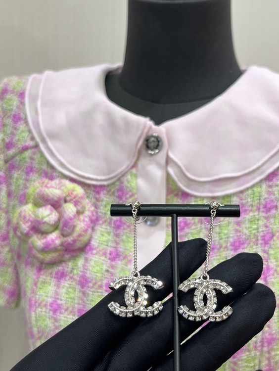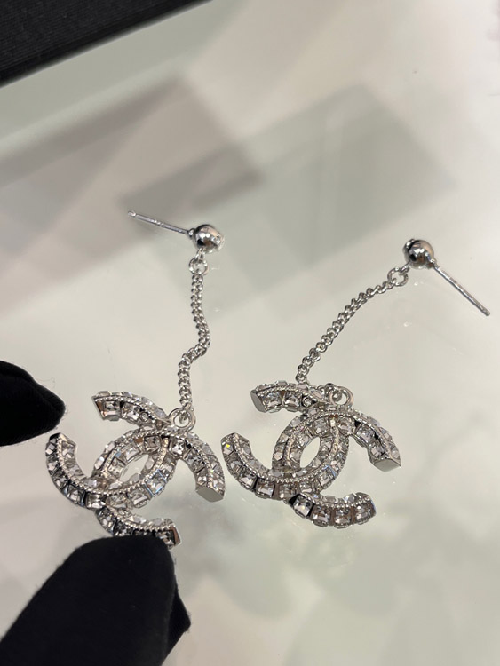 Celine double-sided diamond double C pendant long chain earrings-3902