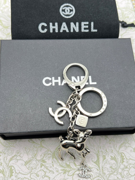 Chanel double c rhinestone pearl deer keychain-3835
