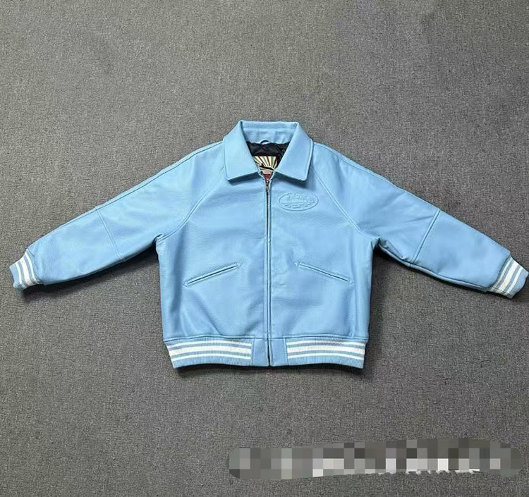 Corteiz Solid Color Lapel Collar Zip-Up Long-Sleeve Leather Jacket-5029