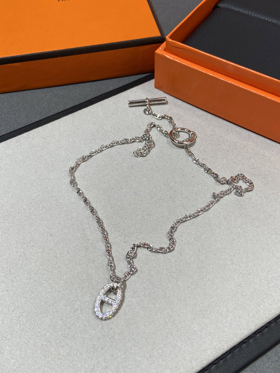 Hermes pig nose full diamond necklace-3613