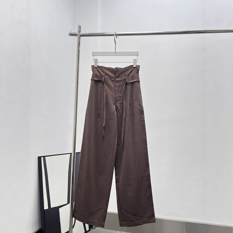 Miu Miu drawstring waist casual trousers with a relaxed, flowing fit-5302