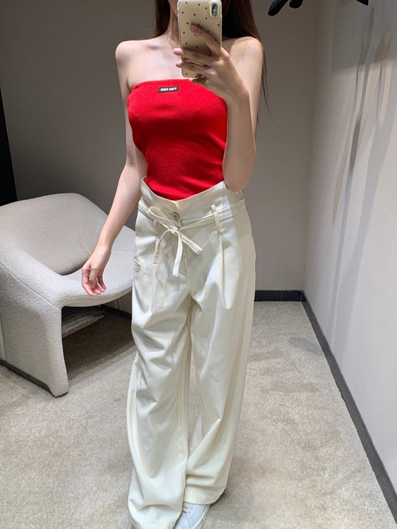 Home > Miu Miu drawstring waist casual trousers with a relaxed, flowing fit-5302