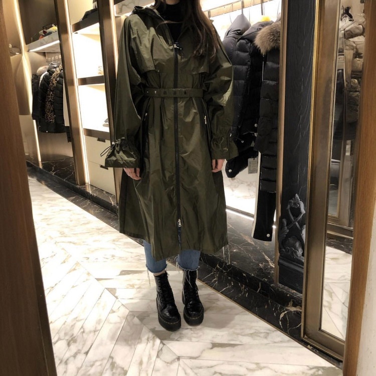 Moncler new mid-length trench coat with a fitted waist-cinching design and sun protection-5361