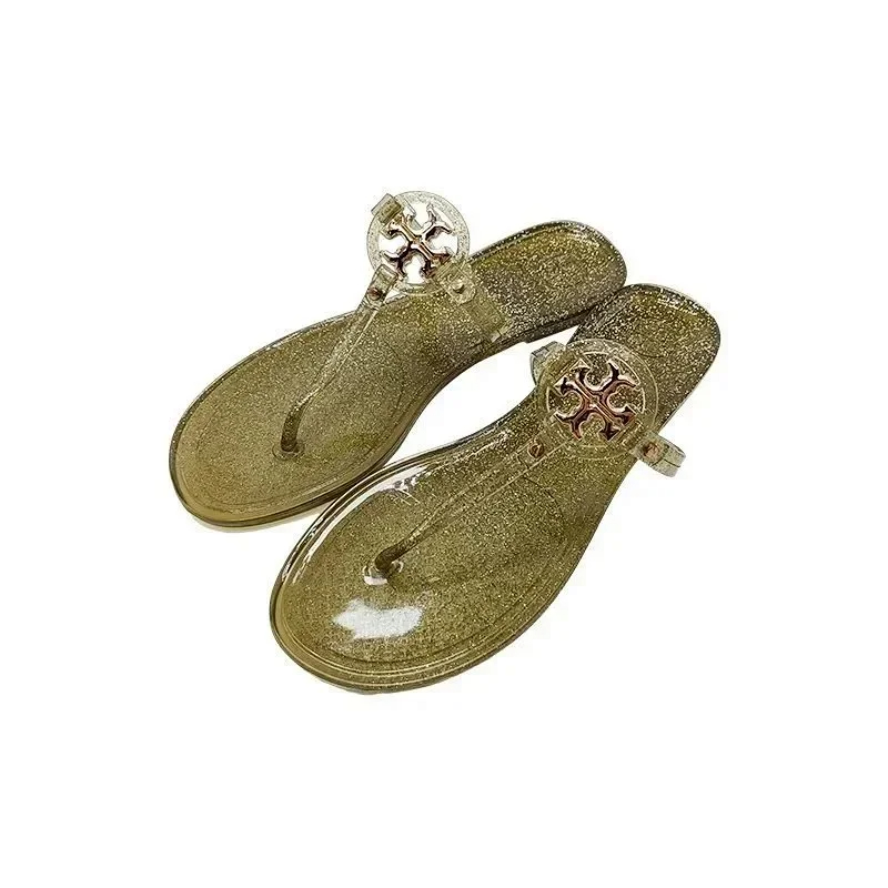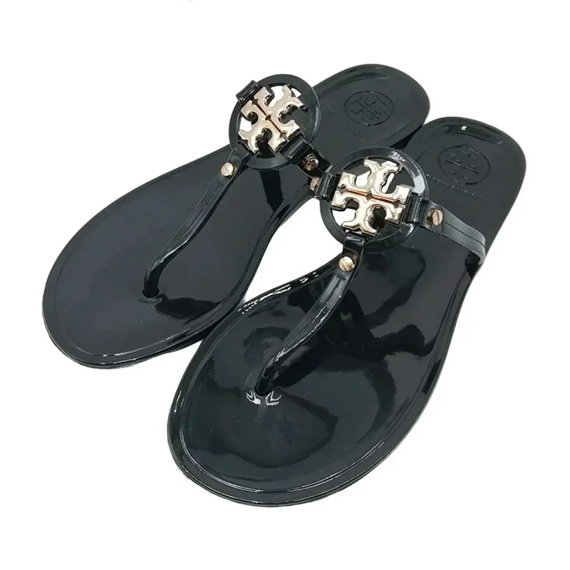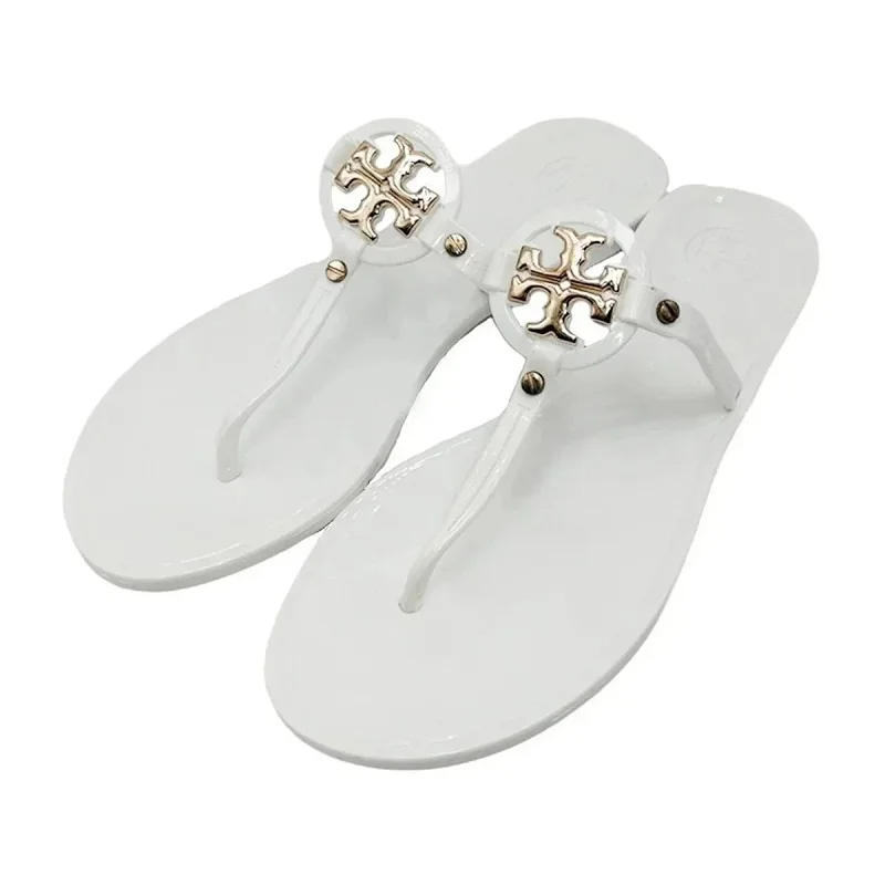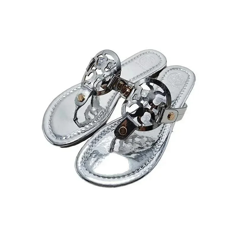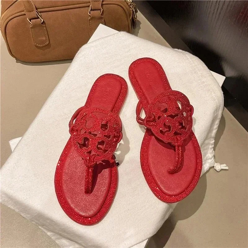Tory Bury New diamond flat bottom women's slippers ins fashionable beach thong toe rivet rhinestone flip flops-2330