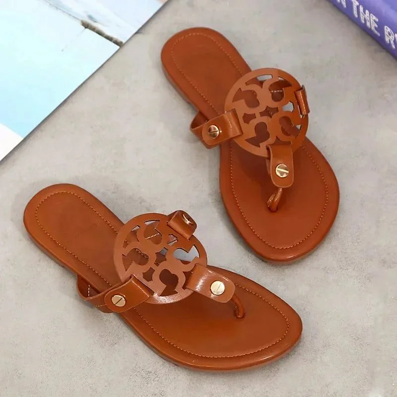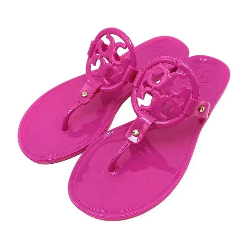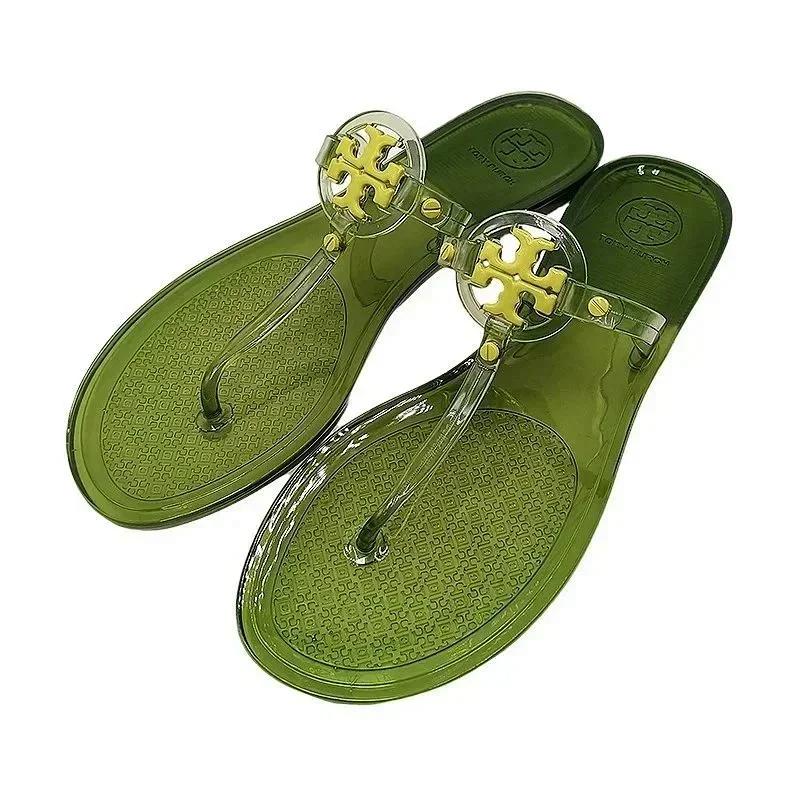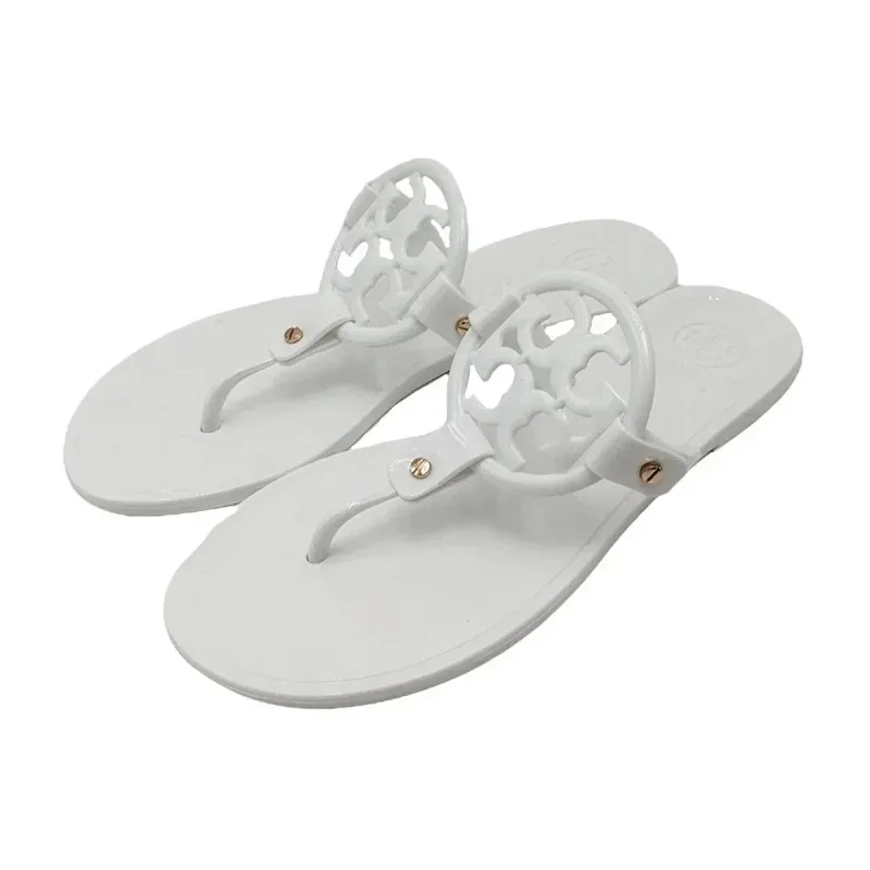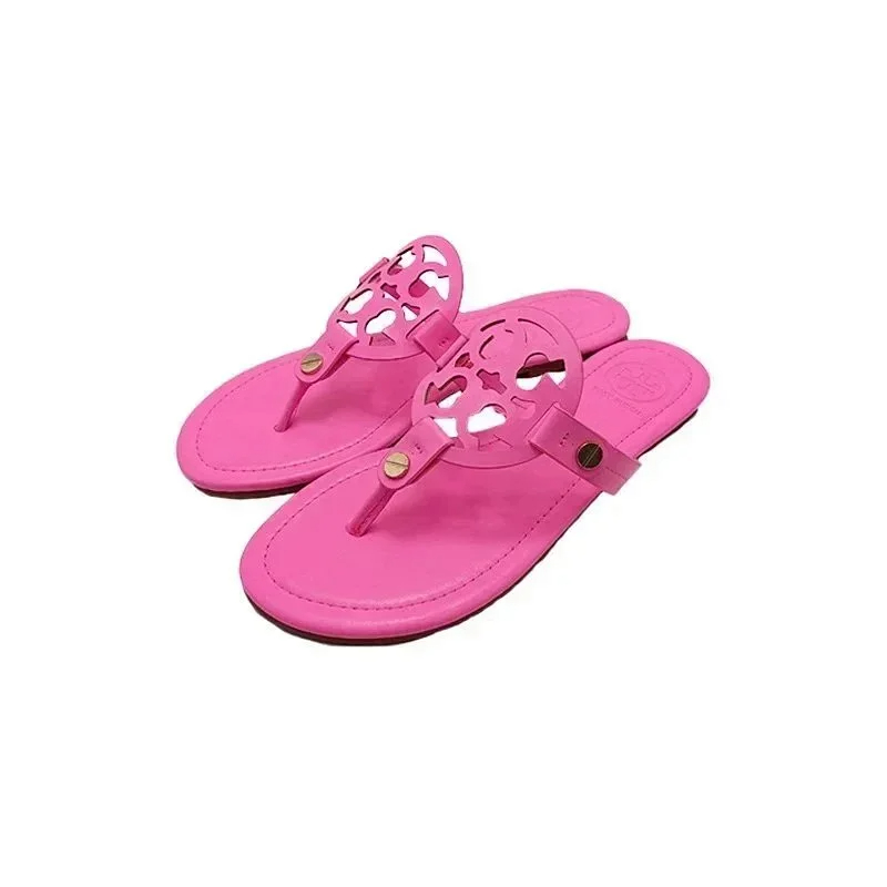 Tory Bury New diamond flat bottom women's slippers ins fashionable beach thong toe rivet rhinestone flip flops-2330