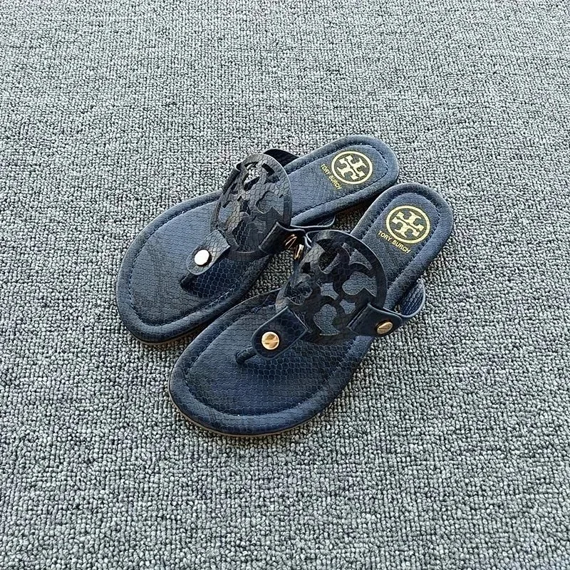 Home > Tory Bury New diamond flat bottom women's slippers ins fashionable beach thong toe rivet rhinestone flip flops-2330